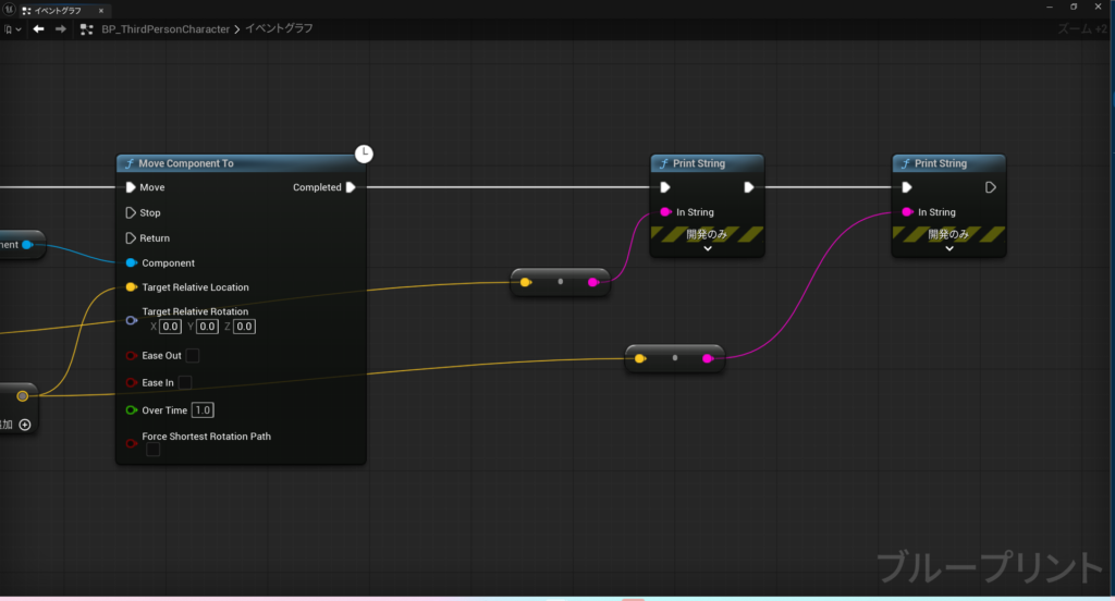 ちなみにMove Component Toノードの出力は「Completed」のため、処理の実行が完了してから通知が次に流れます。