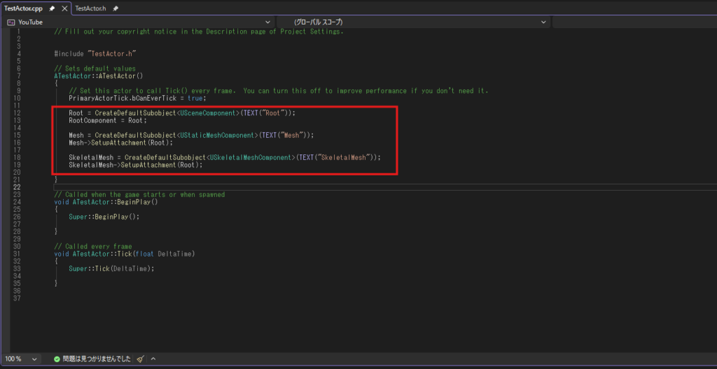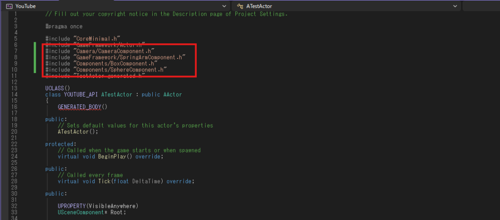 新規C++アクタを作成したらコード記述に移ります。